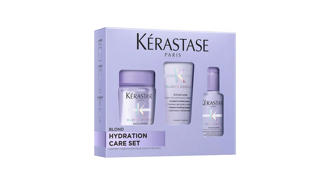 A curated travel‑size trio from the Kérastase Blond Absolu range, designed specifically to care for blonde, lightened or highlighted hair. This discovery set delivers cleansing, conditioning and intensive repair in convenient mini‑formats — ideal for trying the range or taking professional care on the go. Each product is enriched with hyaluronic acid and Edelweiss flower extract, known for their hydrating, strengthening, and protective properties. Together, they help nourish weakened hair fibres, enhance softness and shine, and protect against breakage and heat damage. Perfect for daily care, gentle treatment and maintaining bright, healthy blonde tones.