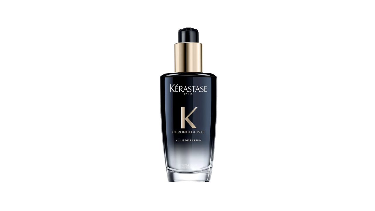Infused with Myrrh extract, Kérastase Chronologiste L’Huile de Parfum is a luxurious fragrance-in-hair-oil that combines the refined notes of Tea Rose, Light Woods, and Musk. Delicately scented, it revitalizes, nourishes, and thickens hair with just a few drops, leaving every strand soft, radiant, and beautifully perfumed