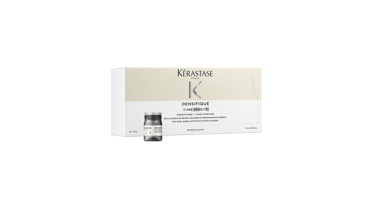 Cure Densifique is a targeted scalp treatment for women experiencing visibly thinning hair. Formulated with Stemoxydine®, Yang Complex, and essential vitamins, this program helps awaken dormant follicles, strengthen hair texture, and maintain hair density over time. Clinical tests show more than 1,000 new hairs after three months, while 2 out of 3 users notice thicker hair** and 80% feel stronger, more resilient strands. Its fast-drying, hypoallergenic, and paraben-free formula is suitable for all hair types, including color-treated or permed hair. With regular use, hair appears visibly fuller, denser, and healthier, restoring confidence in both the look and feel of your hair.