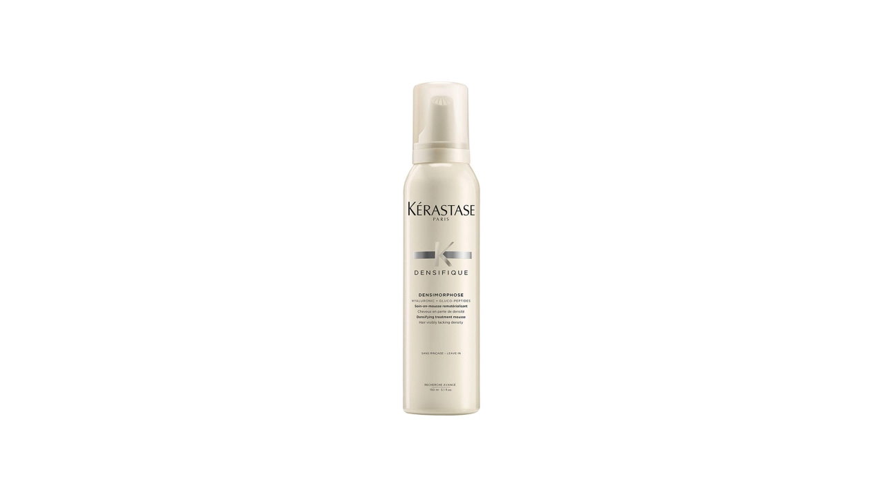 Mousse Densimorphose is formulated to thicken and revive thinning hair. Its fast-absorbing, instant-action texture delivers noticeable density without weighing strands down. Hair fibers are plumped and strengthened from root to tip, creating fuller volume and enhanced body with a lightweight feel. The formula is completely silicone-free.