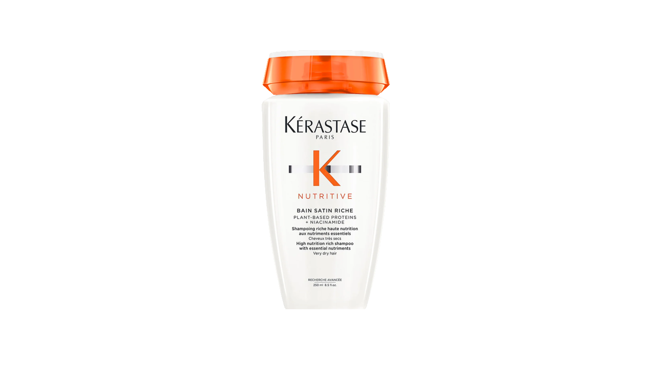 Nutritive Bain Satin by Kérastase is a gentle, hydrating shampoo that nourishes and strengthens dry hair. Its protein-rich formula cleanses deeply, boosts softness and shine, and helps hair retain moisture for long-lasting nourishment. The creamy gel texture delivers lightweight results and provides up to 44% immediate hydration and 72 hours of nutrition. The bottle is made with 95% recycled plastic.