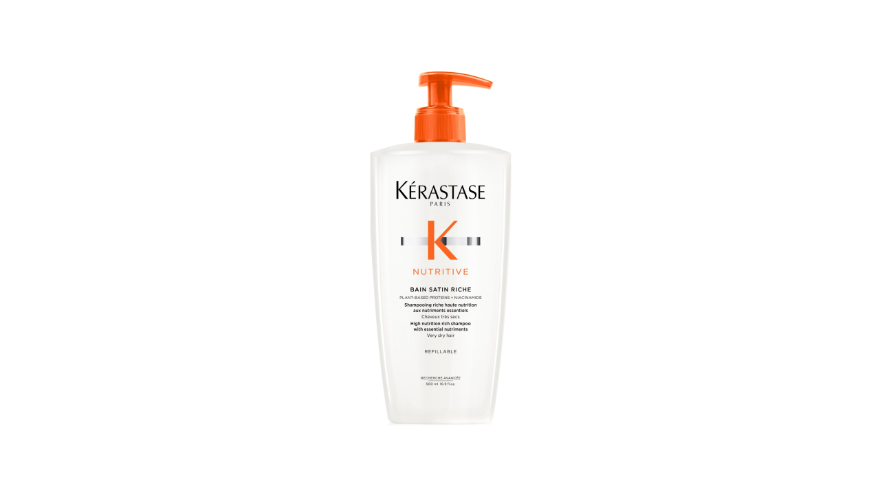 Nutritive Bain Satin Riche by Kérastase is a deeply nourishing shampoo designed for very dry hair. Enriched with anti-dryness polymers, it provides intense nutrition and strengthens each strand, while essential nutrients help reinforce and care for dry hair without weighing it down. This high-performance formula gently cleanses while restoring moisture, comfort, and manageability. Its white, creamy gel texture foams easily and glides smoothly, making it ideal for soothing both very dry hair and an itchy scalp.