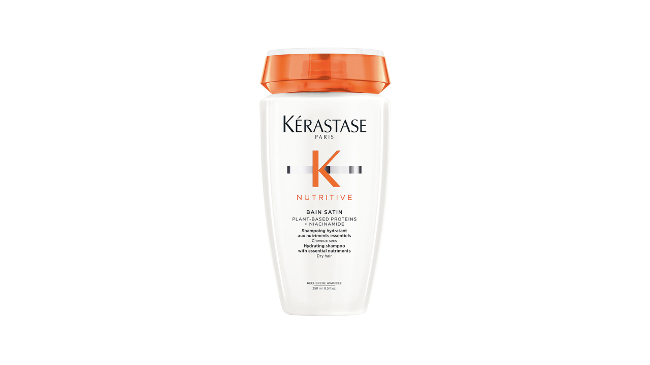 Nutritive Bain Satin by Kérastase is a gentle, hydrating shampoo that nourishes and strengthens dry hair. Its protein-rich formula cleanses deeply, boosts softness and shine, and helps hair retain moisture for long-lasting nourishment. The creamy gel texture delivers lightweight results and provides up to 44% immediate hydration and 72 hours of nutrition. The bottle is made with 95% recycled plastic.