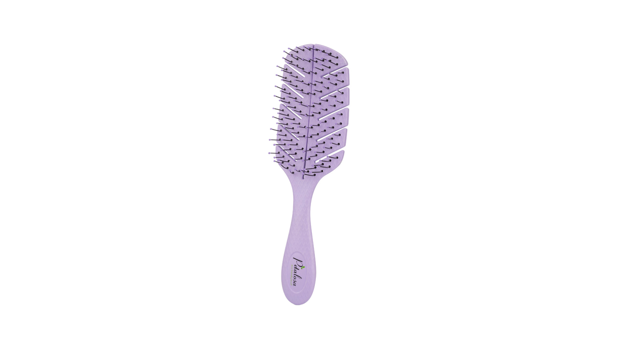 An eco‑friendly detangling brush designed to gently remove knots and snarls from all hair types without pulling or breakage. Made from biodegradable bioplastic derived from vegetable starches such as corn and cassava, this brush naturally breaks down into carbon dioxide and water, reducing environmental impact while caring for hair and scalp health. Its curved ergonomic shape and flexible bristles with rounded tips glide through hair comfortably, stimulating the scalp and promoting circulation for a relaxed brushing experience.