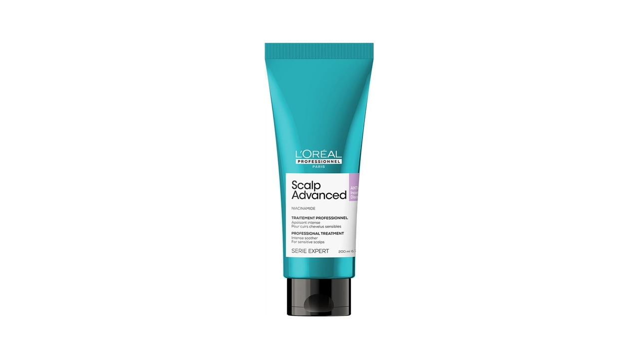 L’Oréal Professionnel Scalp Advanced Anti-Discomfort Conditioner is a lightweight soothing conditioner designed to calm sensitive scalps while softening and detangling the hair. Enriched with Niacinamide (Vitamin B3), it instantly relieves scalp discomfort and leaves hair hydrated, smooth, and weightless after every use.