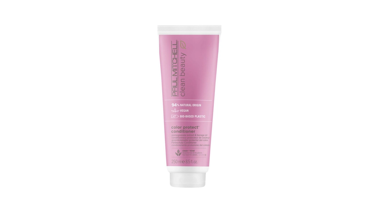 Extend the vibrancy and longevity of colored hair with Paul Mitchell Clean Beauty Color Protect Conditioner, a vegan, sulfate‑free, paraben‑free, and gluten‑free conditioner specially formulated for color‑treated hair. Infused with antioxidant‑rich pomegranate extract to help protect against environmental stress and free radical damage, and borage oil rich in Omega‑3 fatty acids to soften and nourish dry, dull strands, this conditioner boosts shine, improves manageability, and helps preserve color brilliance. Made with 94% natural‑origin ingredients and crafted in recyclable bio‑based packaging derived from sugarcane, it delivers salon‑level performance while supporting cleaner, more sustainable beauty choices. The fruit‑forward scent with delicate floral notes and vanilla undertones enhances the sensory experience each time you condition.