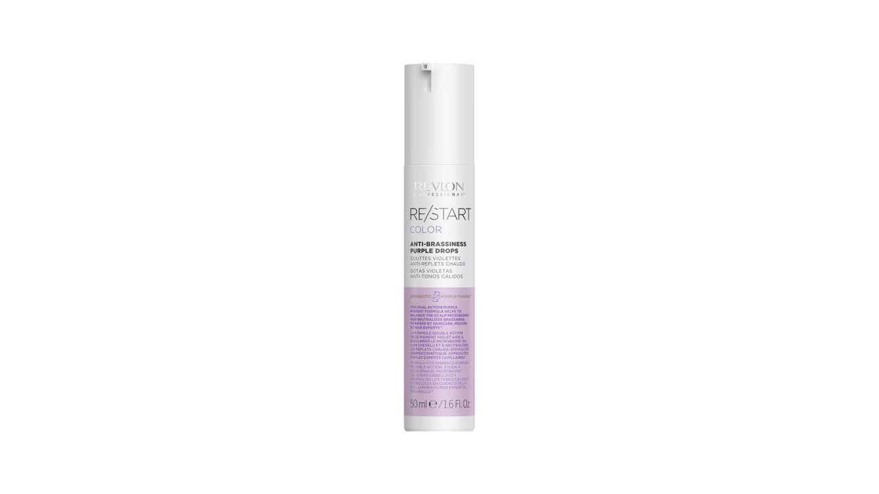 Anti-Warm Highlights Beauty Drops by Revlon neutralise yellow tones in blonde, white, or grey hair. Powered by KERABIOTIC PURPLE CHARGE™ technology, these drops can be mixed with your shampoo, care, or mask products to create customised shades and maintain bright, cool-toned hair.