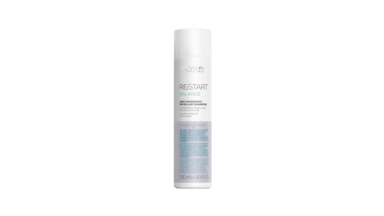 Revlon Re/Start Balance Scalp Shampoo is designed for hair prone to dandruff. Its gentle micellar formula cleanses hair and scalp without causing stress, restoring freshness and promoting a healthy look. Enriched with the Kerabiotic Equifeel complex, it balances the scalp’s natural microbiota, prevents dehydration, strengthens and nourishes weakened hair, and helps reduce dandruff over time.